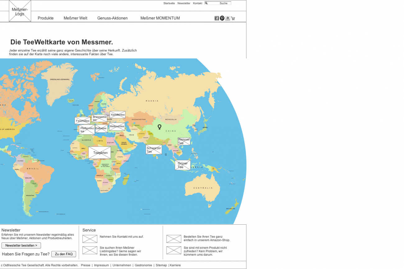 Dafür wurde die Seite auf wenige Navigationspunkte vereinfacht, der Fokus auf die Produkte, sowie die Tee-Welt von Meßmer und Meßmer Momentum gesetzt und dem User auf jeder Seite ermöglicht, viel Neues über Tee und die Produkte von Meßmer zu erfahren.