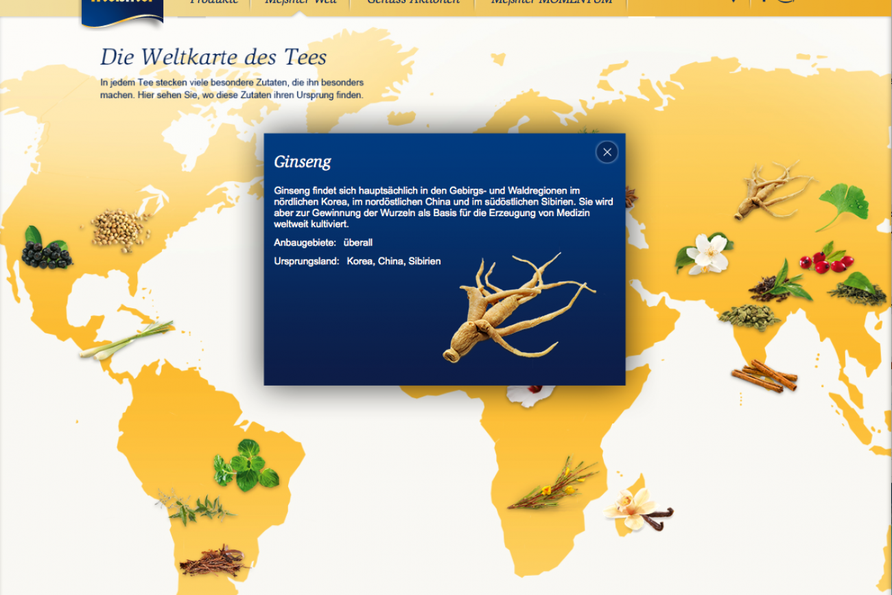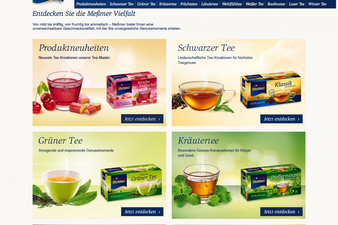 Die Webseite des Tee-Herstellers Meßmer benötigte dringend eine Aktualisierung. Gemeinsam mit Scholz & Friends one:zero durfte ich für die Ostfriesische Tee Gesellschaft den konzeptionellen Relaunch der Meßmer-Webseite betreuen.