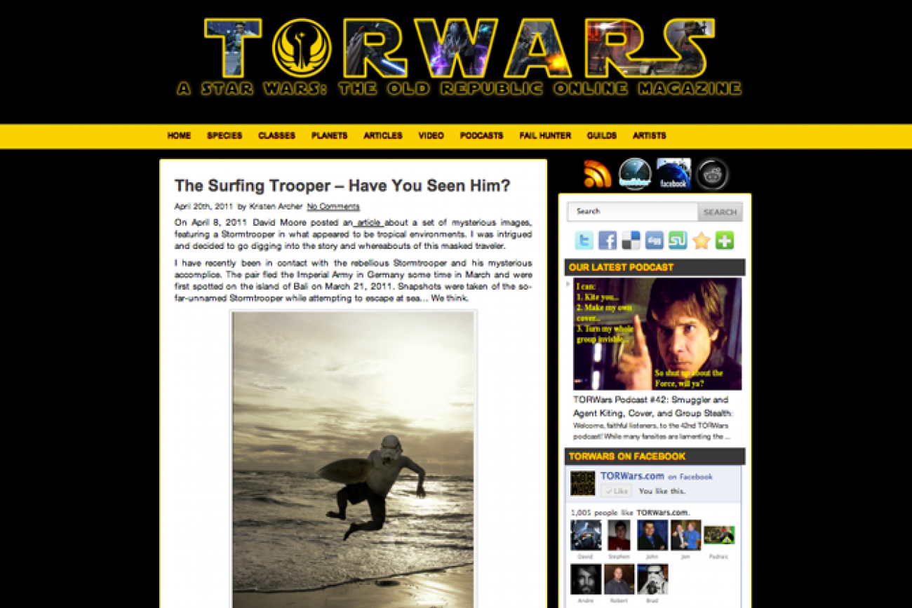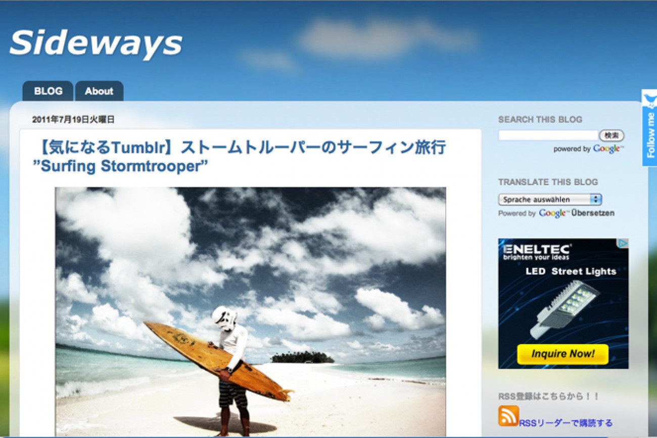 Der „Surfing Trooper“ war der Weltreiseblog meines Mannes Andre Price und mir. Genau wie wir 2010 unsere Jobs gekündigt haben und einfach auf Reisen gegangen sind, ist mit uns der imaginäre Star Wars-Trooper mit der Begeisterung fürs Surfen dem System entflohen und genießt sein Leben auf Reisen.