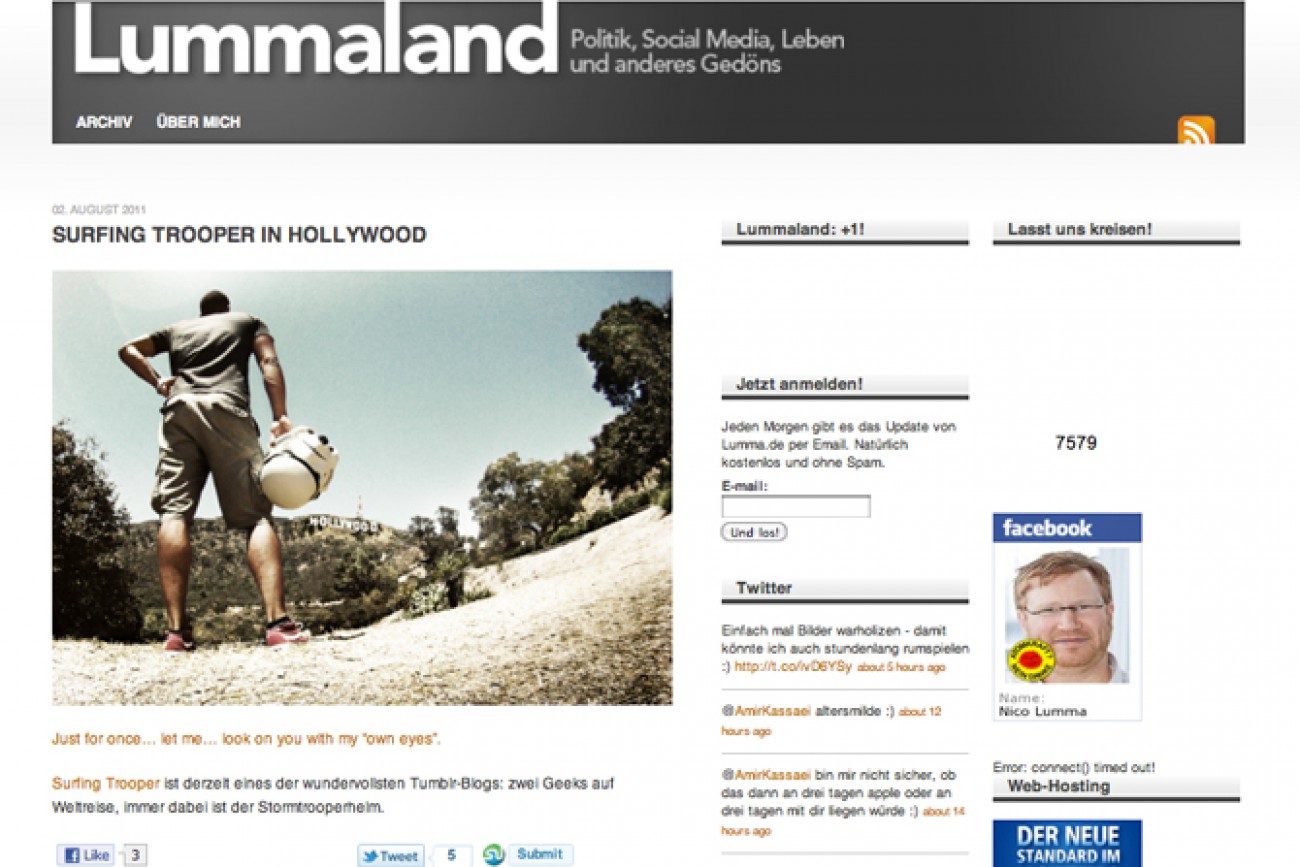 Buzz auf Blogs wie lummaland, nerdcore einmal und nerdcore zweites Mal, Torwars,neatorama, Surfrider Foundation, Geeks of Doom und Buzzfeed, sowie dem Blog desSCIFI-Channels und international in vielen Sprachen.